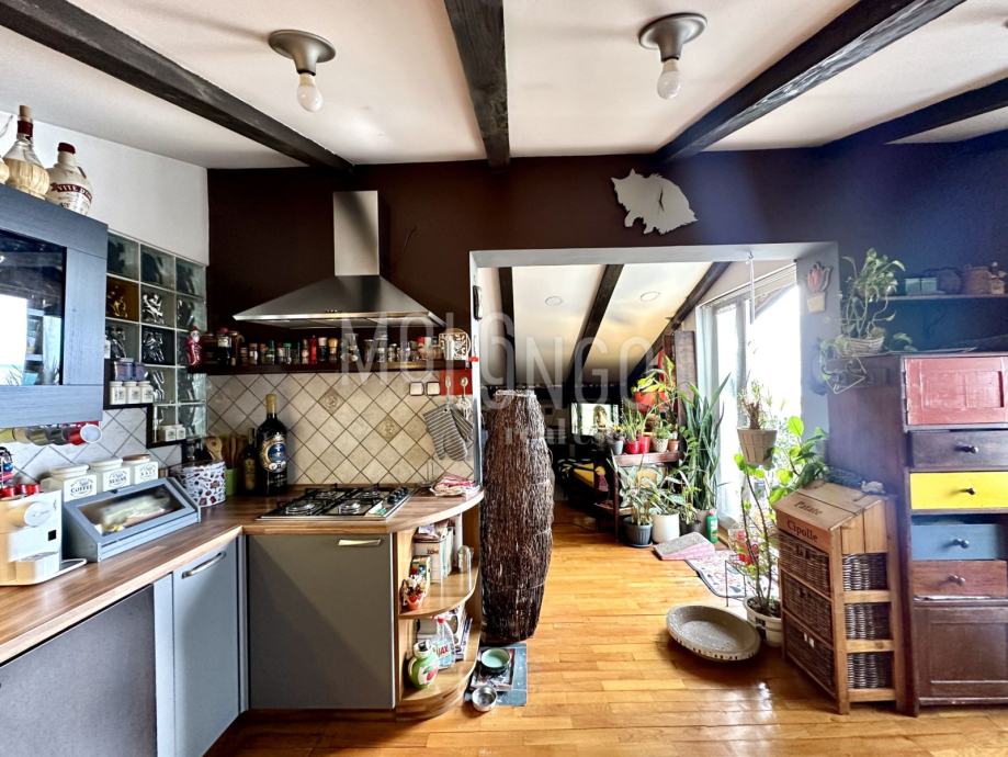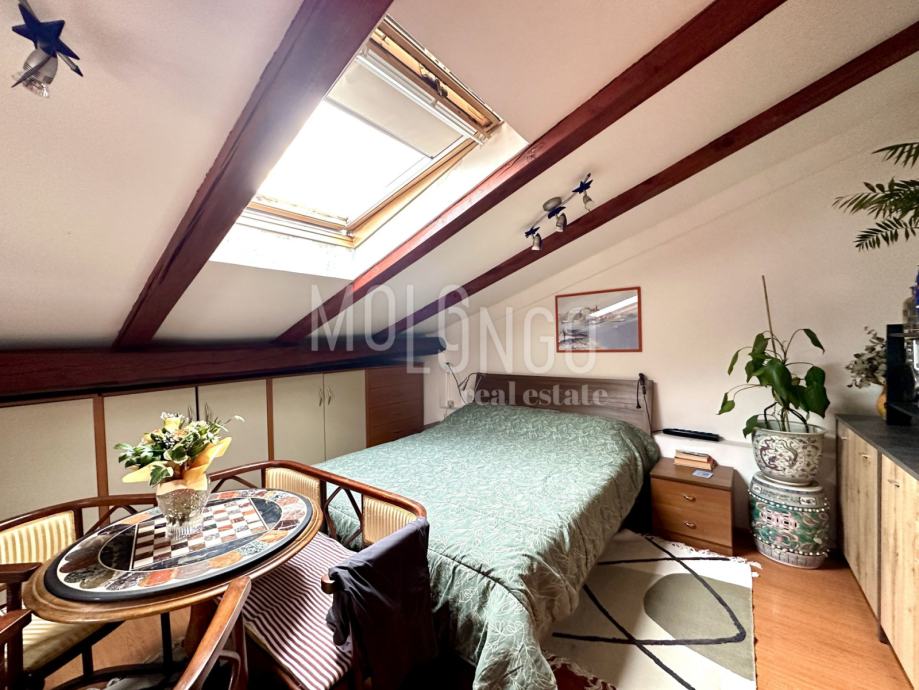 Ovaj stan s 2 sobe i dnevnim boravkom smješten je u visokom potkrovlju kuće u mirnoj slijepoj ulici, pružajući savršeno okruženje za obitelj ili par. Visina stropa varira od 1.50 m do 2.70 m, stvarajući jedinstven i šarmantan ambijent. Stan je površine 100m2, dok je u naravi 88m2.
