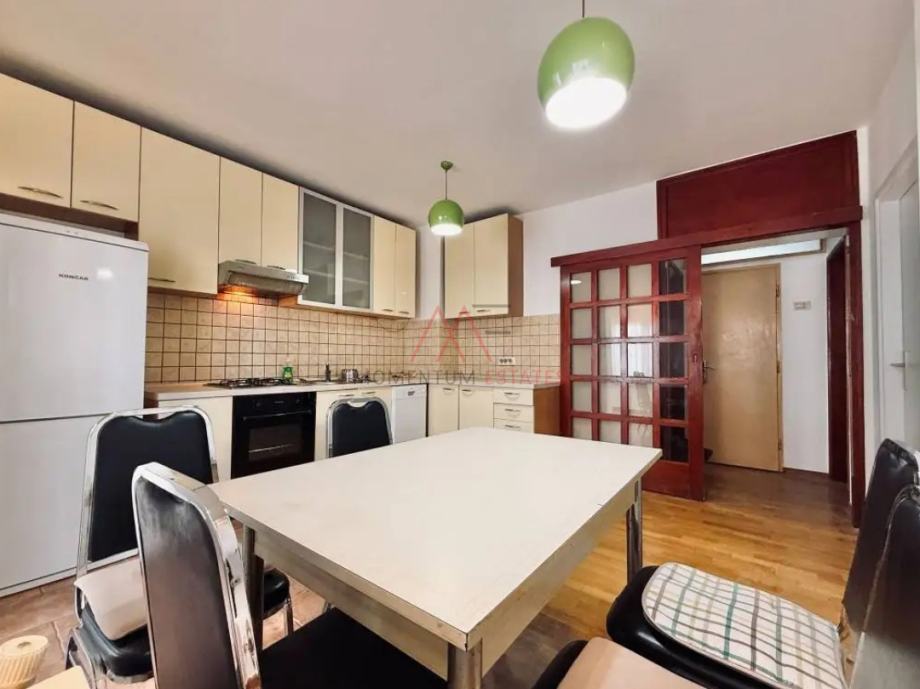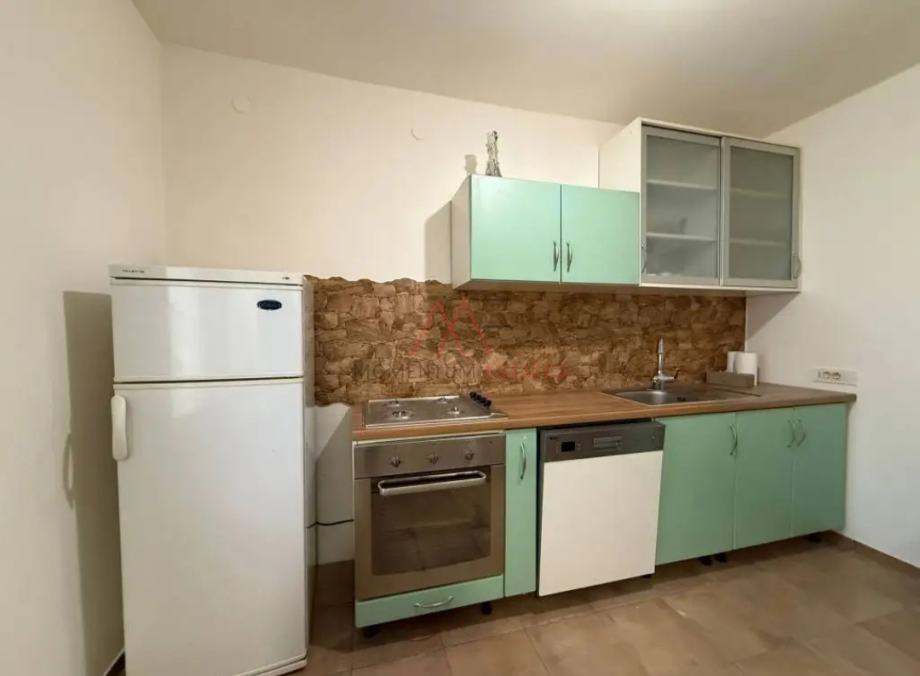 Iznajmljuje se kuća sa dva odvojena stana, svaki stan površine od 70m2 Kuću odlikuje balkon duž cijele strane kuće, terasa za sjedenje s čvrstom nadstrešnicom, spremište, kotlovnica a centralno grijanje i konoba (korsti se kao drvarnica iako ima stajaću visinu nije pogodna za preuređenje u prostor za druženje)..Grijanje je centralno na naftu i klima uređaj. Okućnica površine 250m2. Parking je u vlasništvu ispred kuće.