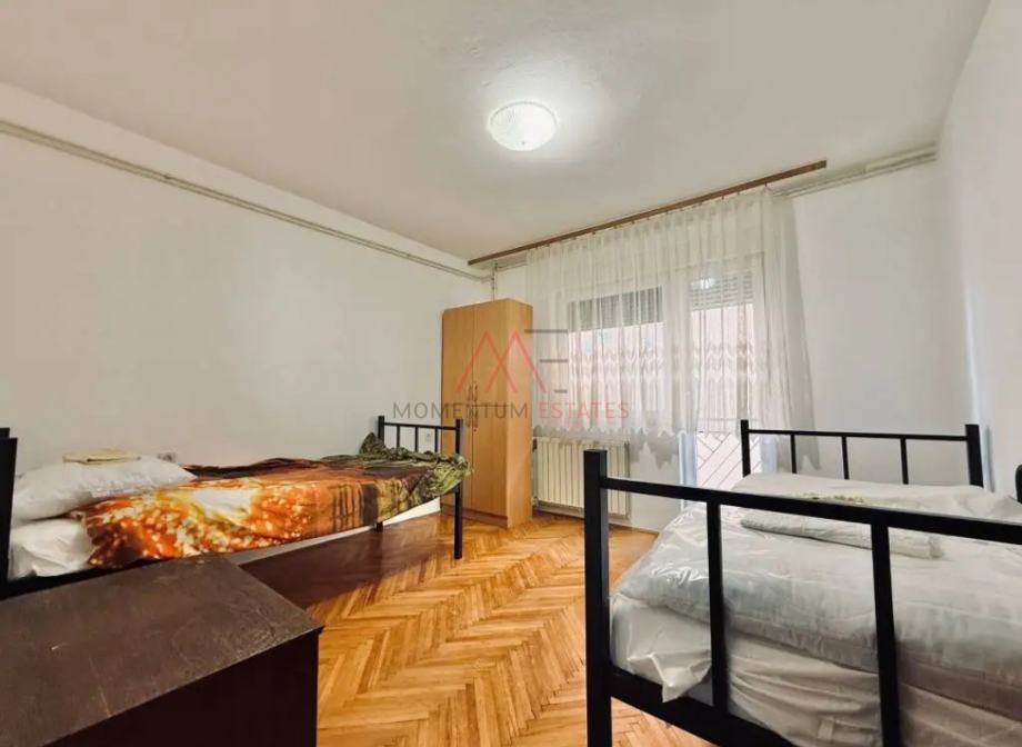 Prodaje se kuća sa dva odvojena stana, svaki stan površine od 70m2, te potkrovlja korisne površine 40m2 (najviša točka 2.2m, mogućnost probijanja stepenica iz gornjeg stana u potkrovlje kako bi se dobila dodatna soba/ured i sl.). Kuća je održavana, no dio ipak zahtjeva zamjenu kako bi se ugodno živjelo (laminat pod u kuhinj/blagovaoni i sl), izgrađena 80-tih godina. Zadnjih godinu dana stanovi su u najmu za radnike, te su stoga stanovi pregrađeni u trosobne klasične kako bi se dobilo više prostorija za spavanje, no vrlo ih je lako prenamijeniti u komforne dvosobne stanove. Kuću odlikuje balkon duž cijele strane kuće, terasa za sjedenje s čvrstom nadstrešnicom, spremište, kotlovnica a centralno grijanje i konoba (korsti se kao drvarnica iako ima stajaću visinu nije pogodna za preuređenje u prostor za druženje)..Grijanje je centralno na naftu i klima uređaj. Okućnica površine 250m2. Parking je u vlasništvu ispred kuće, te mogućnost dodatna 2 parkirna mjesta. Odlična nekretnina za investiciju kao i za život.