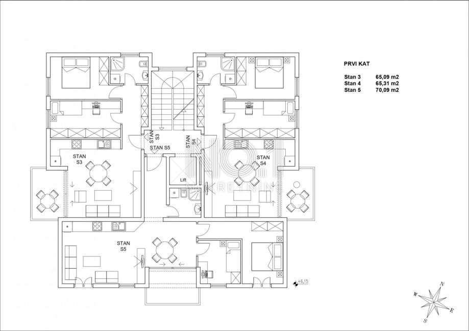 Ovaj šesterokatni objekt tlocrtno je pravilnog oblika, te se sastoji od 5 nadzemnih i 1 suterenske etaže, sa 16 jedinica, od kojih su 13 stambene namjene, te 3 poslovne namjene.