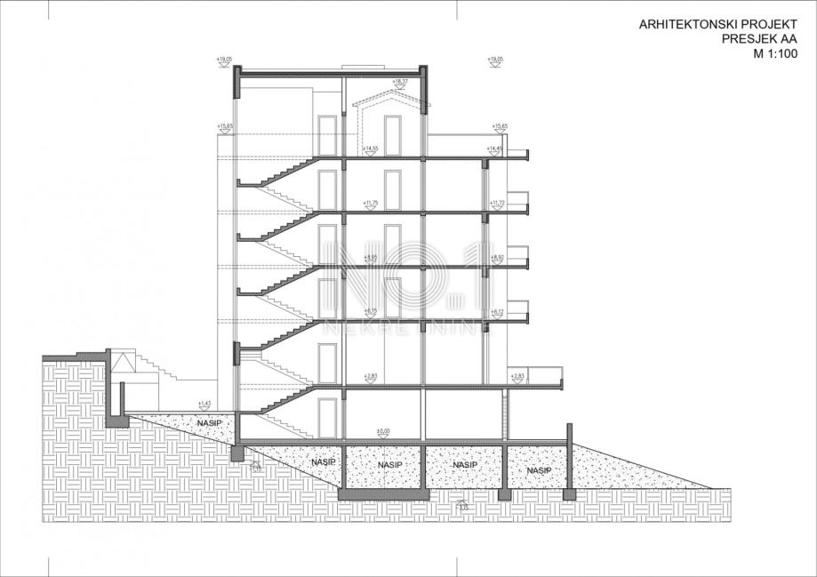 Ovaj šesterokatni objekt tlocrtno je pravilnog oblika, te se sastoji od 5 nadzemnih i 1 suterenske etaže, sa 16 jedinica, od kojih su 13 stambene namjene, te 3 poslovne namjene.