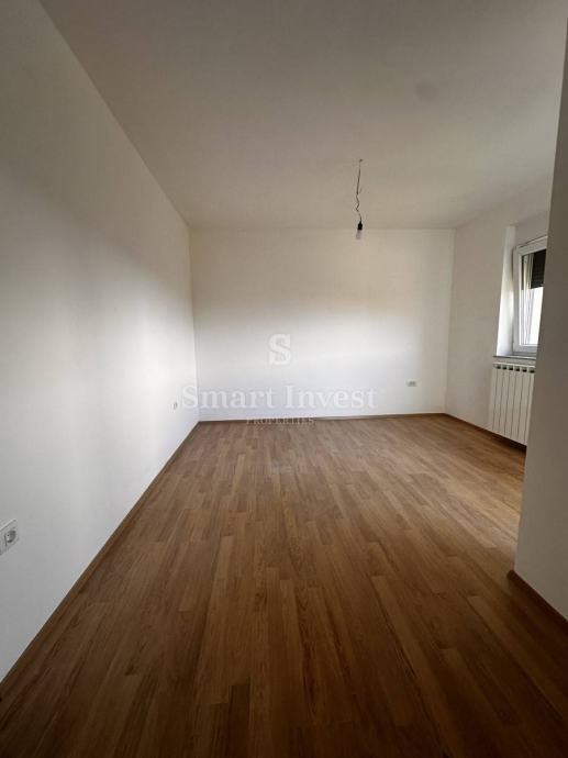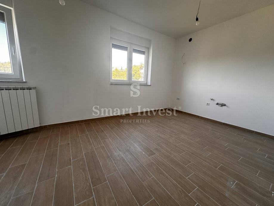 Stan površine 96.49 m2 se nalazi na 1. katu koji novije gradnje s 4 stambene jedinice te se sastoji od 2 spavaće sobe, dnevnog boravka s kuhinjom i blagavaonicom, kupaonice i wc-a, balkona.