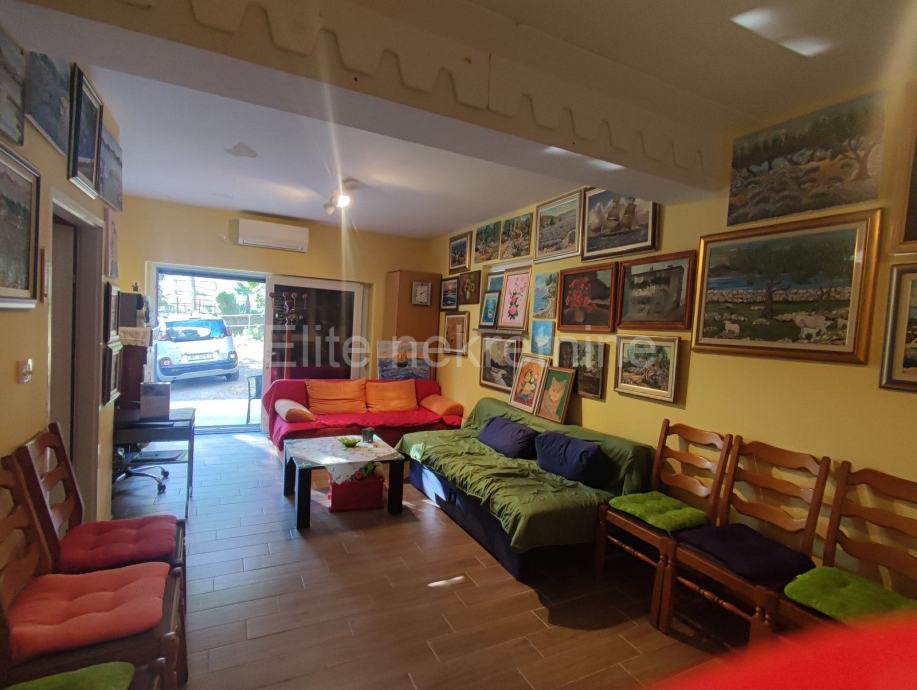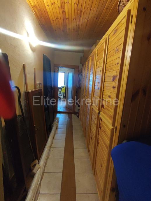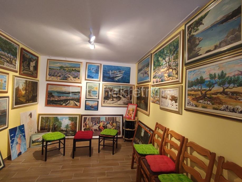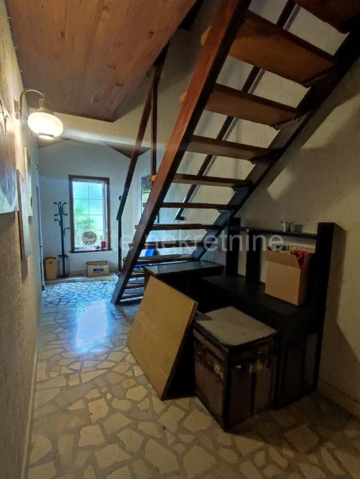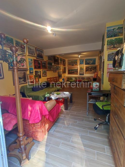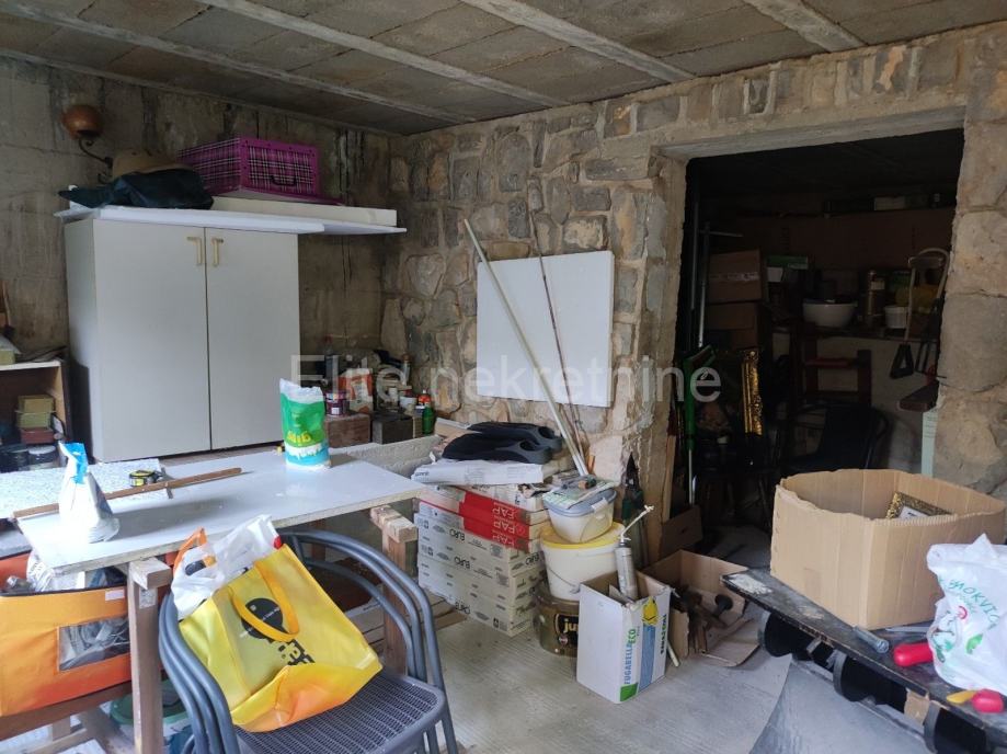 Iz ulaznog hodnika se ulazi u garažu koja trenutno služi kao atelje, te ima još jedan zaseban wc i hodnik iz kojeg se ide u jednu veliku prostoriju koja služi kao konoba za druženje. Konoba ima ulaz iz hodnika te sa vanjske strane. Uređena je u retro stilu, kompletna kuća ima PVC stolariju koja je promijenjena prije 3 godine.