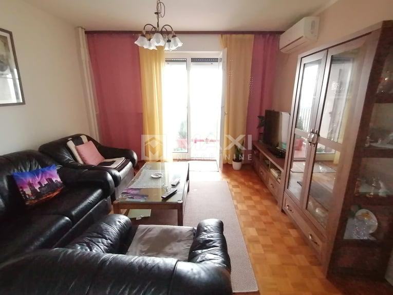 Stan na Zametu, 69 m2, sastoji se od dvije spavaće sobe, kuhinje s blagovaonom, dnevnog boravka, kupaone, hodnika i balkona s kojeg se pruža pogled na more.