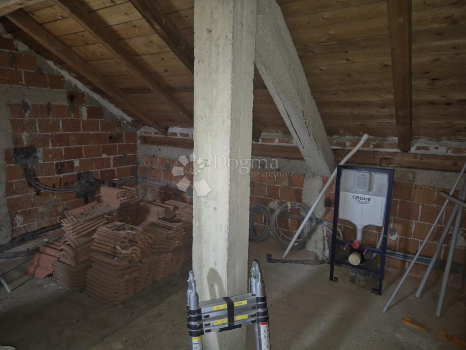 Suteren se sastoji od prostorije za skladištenje voća, prostorija za druženje ili spremišta, sa provedenom strujom i vodom sa sigurnosnim ventilom za zimski period. Zatim tu je prizemlje sa zasebnim ulazom koje se sastoji od dnevnog boravka, prostrane terase, kuhinje, kupaonice. U potkrovlju nailazimo na sekundarnu kupaonicu, 3 spavaće sobe i balkon. Instalacije novo provedene spremno čekaju na spajanje na priključak.