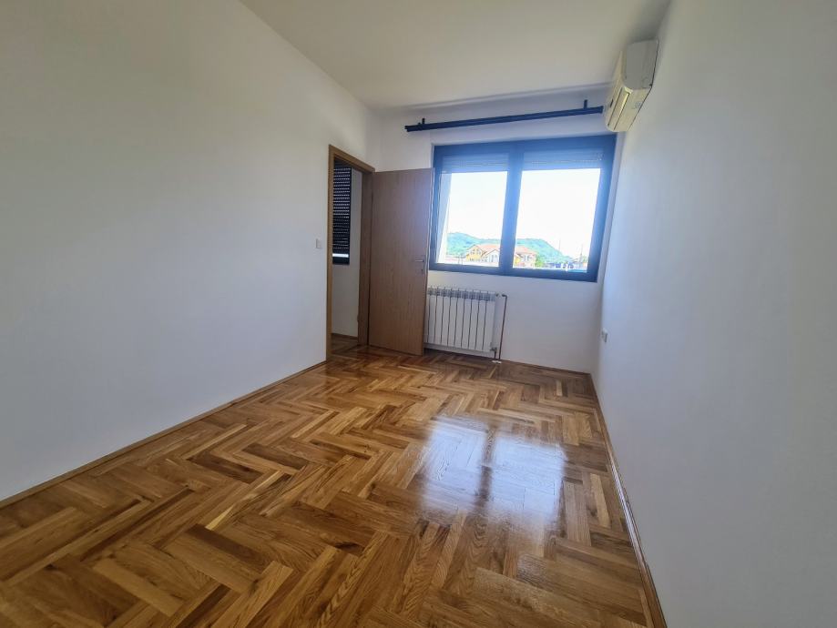 Stan se nalazi na 1. katu (ukupno 2) i sastoji od 2 spavaće sobe, dnevnog boravka(koji je pregrađen i napravljena jedna soba), kuhinje, kupaonice i hodnika ukupne površine 49.01m², Orijentacija jug-istok, puno prirodnog svjetla.