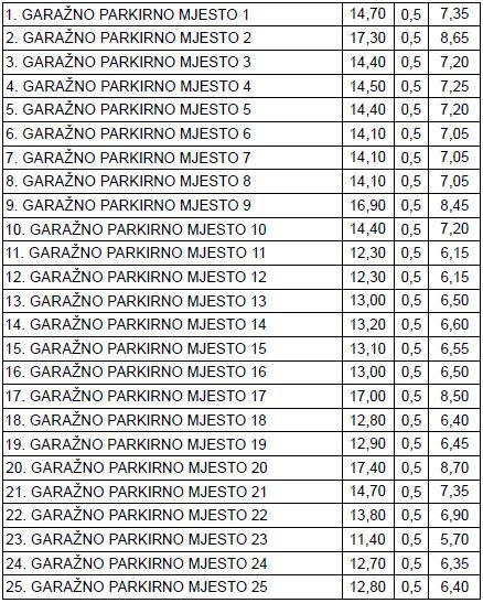 - garažna parkirna mjesta.