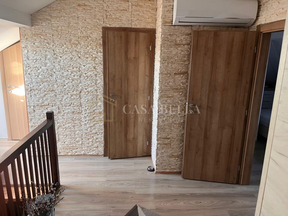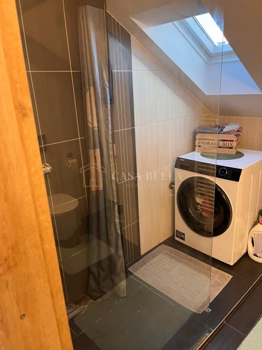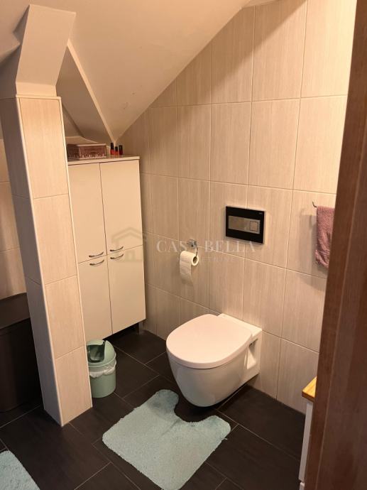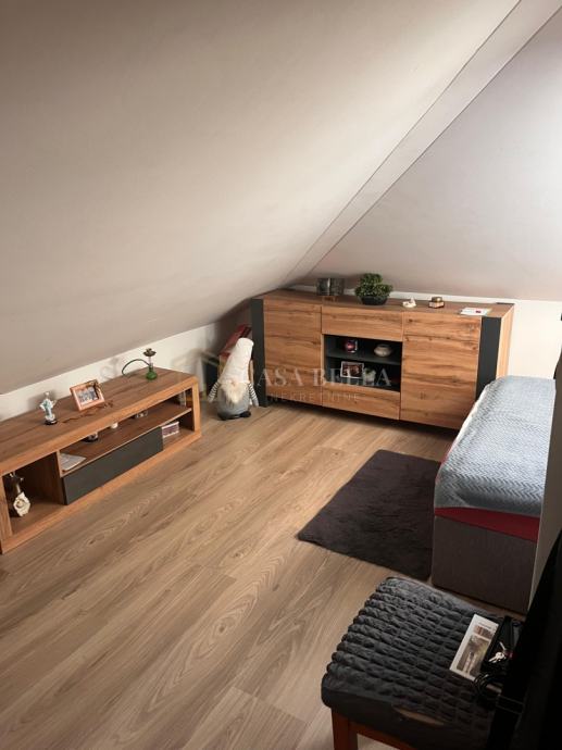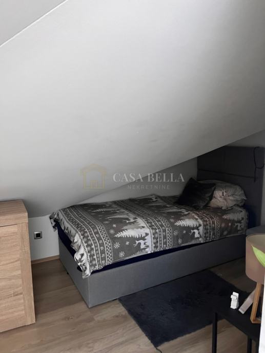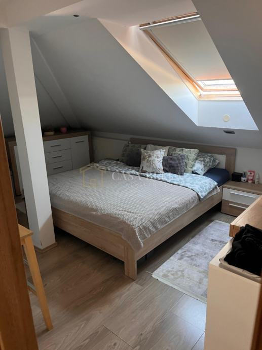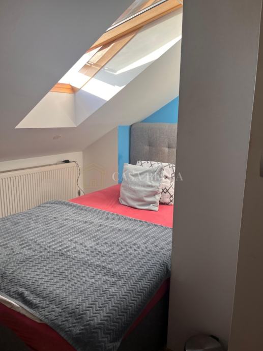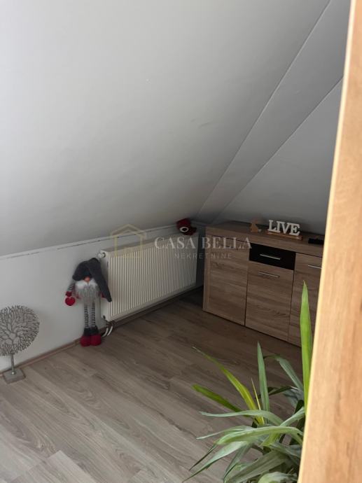 Ovaj dvoetažni potkrovni stan nalazi se u samom centru Zaprešića, u neposrednoj blizini svih važnih sadržaja. Ukupna površina stana iznosi 95,21 m², dok je neto korisna površina 69,68 m². U donjoj etaži nalazi se prostran i svijetao dnevni prostor koji objedinjuje kuhinju, blagovaonicu i boravak, a na gornjoj etaži tri spavaće sobe, kupaonica s tušem i spremište. Stan je kompletno renoviran prije pet godina te je opremljen modernim namještajem rađenim po mjeri, zbog čega ne zahtijeva nikakva dodatna ulaganja. Grijanje je plinsko etažno, a stan se prodaje namješten, osim osobnih stvari prodavatelja te sušilice rublja, perilice suđa i škrinje. Zgrada se nalazi odmah uz zaprešićku tržnicu, a javni parking je osiguran uz godišnju pretplatu. Papiri su uredni, što omogućuje kupnju i putem kredita.