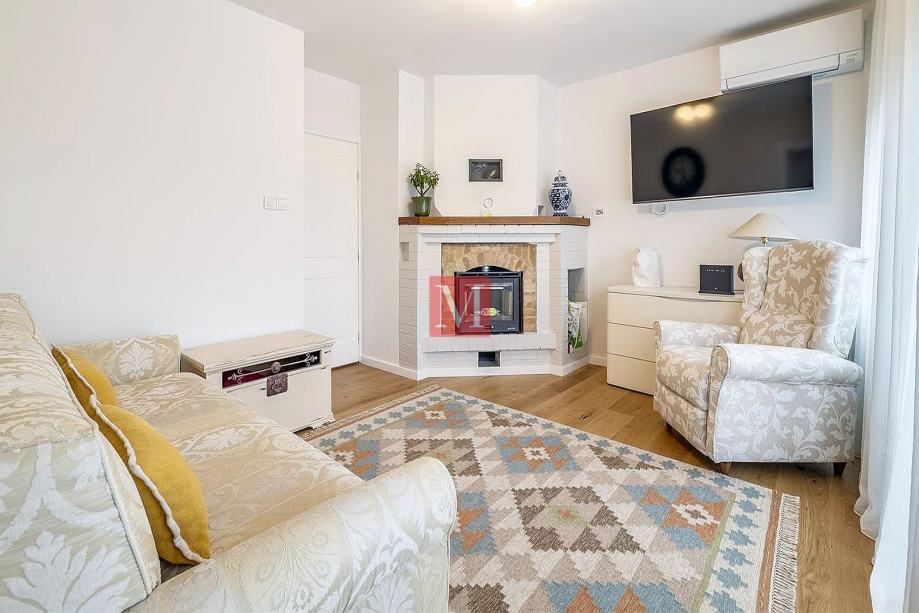 Kuća je opremljena u potpunosti svim aparatima, luksuzna njemačka Nolte kuhinja, dva nova ugradbena Hojan kamina, Mitsubishi klime od 8kw.Predan je zahtjev za priključenje na solarne panele.