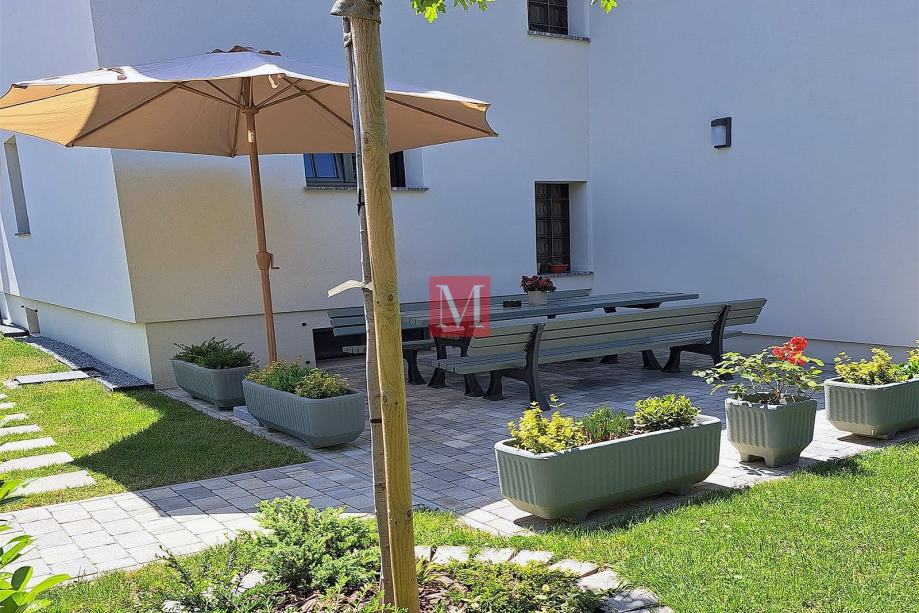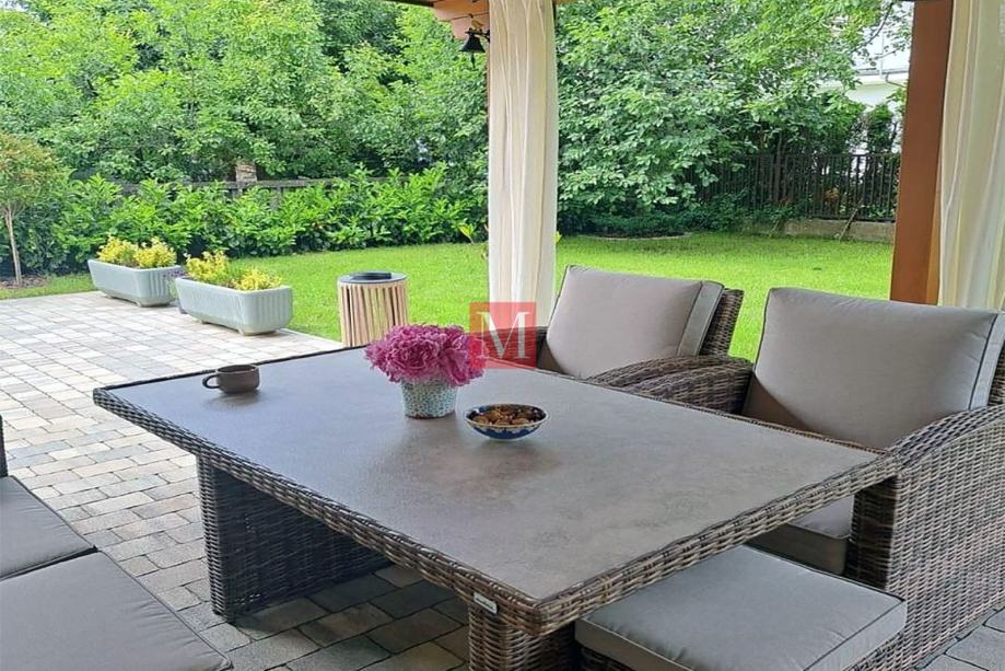 Oko kuće se nalazi lijepo uređena i održavana okućnica koja pruža potpunu privatnost i mir. U dvorištu se nalazi solarni tuš, moderna natkrivena vanjska kuhinja idealna za druženja i prostrani prostor za sjedenje.