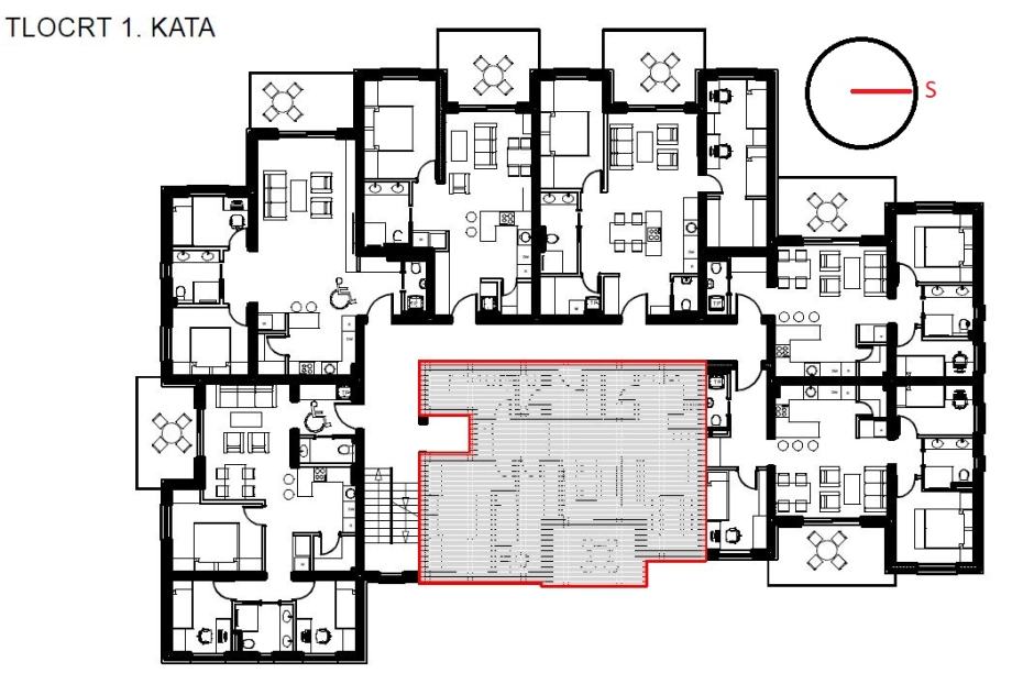 *sedam stanova na prvom katu od kojih jedan dvosoban, četiri trosobna te dva četverosobna stana.