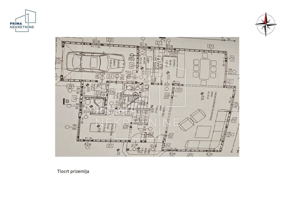 U prizemlju se nalazi ulazni hodnik, dnevni boravak povezan s kuhinjom i blagovaonicom s izlazom u vrt, gostinjski toalet, vešeraj te garaža s izravnim ulazom u kuću. Posebnu prednost predstavlja potpuno odvojen prostor s vlastitim ulazom i sanitarnim čvorom koji je idealan za ured, salon, tihu djelatnost ili rad od kuće bez narušavanja privatnosti ostatka doma. Na katu se nalazi prostrano i prirodno osvijetljeno predsoblje, četiri spavaće sobe opremljene walk-in ormarima te dvije moderno uređene kupaonice.