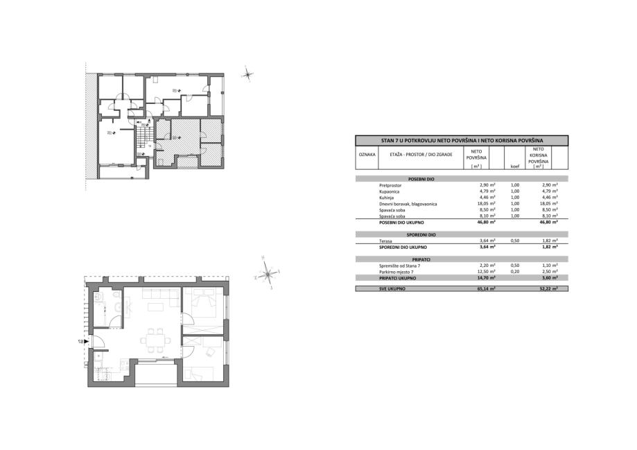 Brdovec, Gornji Laduč, NOVOGRADNJA, prekrasna lokacija za život okružena zelenilom i prirodom, a opet u blizini centra grada. Odlične dvije moderne zgrada, ukupno 3 etaže i 18 stanova, gradit će se prema visokom standardima. Useljenje ljeto 2026. godine.Stan Z2- S7 - trosoban stan u potkrovlju, zatvorene površine 46,80 m2 koji se sastoji od pretprostora, dnevnog boravka s kuhinjom i blagovaonicom otvorenog tlocrta s izlazom na terasu 3,64 m2, dvije spavaće sobe i kupaonice. Pripada mu spremište u podrumu 2,20 m2 i vanjsko parkirno mjesto 12,50 m2. Ukupno obračunska neto korisna površina 52,22 m2.Kvalitetna oprema: PVC stolarija s komarnicima, klimatizirani, protuprovalna ulazna vrata, laminat, vrhunska keramika i sanitarna oprema...Izuzetno dobra i brza prometna povezanost cestom ili željeznicom sa Zagrebom i Zaprešićem. Blizina škole, vrtića, dućana. Idealan stan i lokacija za kvalitetan i miran obiteljski život.Za sve ostale informacije stojimo na raspolaganju....