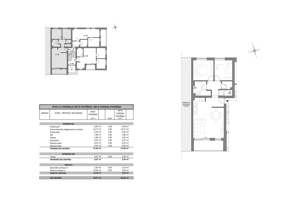 Brdovec, Gornji Laduč, NOVOGRADNJA, prekrasna lokacija za život okružena zelenilom i prirodom, a opet u blizini centra grada. Odlične dvije moderne zgrada, ukupno 3 etaže i 18 stanova, gradit će se prema visokom standardima. Useljenje ljeto 2026. godine.Stan Z2- S3 - trosoban stan u prizemlju, zatvorene površine 57,40 m2 koji se sastoji od pretprostora, dnevnog boravka s kuhinjom i blagovaonicom otvorenog tlocrta s izlazom na terasu 6,67 m2, dvije spavaće sobe, kupaonice, gostinjskog wc-a i ostave. Pripada mu spremište u podrumu 2,20 m2 i vanjsko parkirno mjesto 12,50 m2. Ukupno obračunska neto korisna površina 64,34 m2.Kvalitetna oprema: PVC stolarija s komarnicima, klimatizirani, protuprovalna ulazna vrata, laminat, vrhunska keramika i sanitarna oprema...Izuzetno dobra i brza prometna povezanost cestom ili željeznicom sa Zagrebom i Zaprešićem. Blizina škole, vrtića, dućana. Idealan stan i lokacija za kvalitetan i miran obiteljski život.Za sve ostale informacije stojimo na raspolaganju....