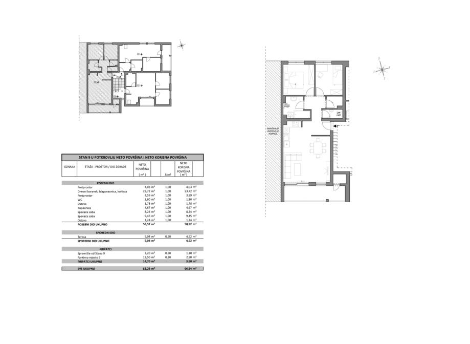Brdovec, Gornji Laduč, NOVOGRADNJA, prekrasna lokacija za život okružena zelenilom i prirodom, a opet u blizini centra grada. Odlične dvije moderne zgrada, ukupno 3 etaže i 18 stanova, gradit će se prema visokom standardima. Useljenje ljeto 2026. godine.Stan Z2- S9 - trosoban stan u potkrovlju, zatvorene površine 58,52 m2 koji se sastoji od pretprostora, dnevnog boravka s kuhinjom i blagovaonicom otvorenog tlocrta s izlazom na terasu 9,04 m2, dvije spavaće sobe, kupaonice, gostinjskog wc-a i ostave. Pripada mu spremište u podrumu 2,20 m2 i vanjsko parkirno mjesto 12,50 m2. Ukupno obračunska neto korisna površina 66,64 m2.Kvalitetna oprema: PVC stolarija s komarnicima, klimatizirani, protuprovalna ulazna vrata, laminat, vrhunska keramika i sanitarna oprema...Izuzetno dobra i brza prometna povezanost cestom ili željeznicom sa Zagrebom i Zaprešićem. Blizina škole, vrtića, dućana. Idealan stan i lokacija za kvalitetan i miran obiteljski život.Za sve ostale informacije stojimo na raspolaganju....