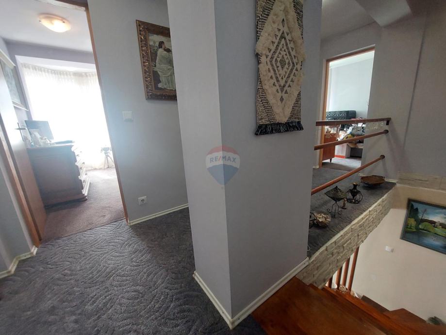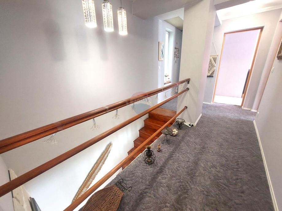 Unutarnje stepenice vode na kat gdje se nalaze dvije prostrane spavaće sobe te jedna manja soba i kupaonica sa wc-om.