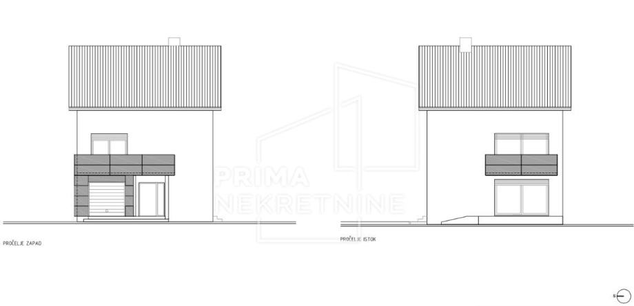 Prizemlje je koncipirano kao otvoreni dnevni boravak povezan s blagovaonicom i kuhinjom, s mogućnošću izlaska na terasu, jedne sobe, kupaonice s WC-om, hodnika, stubišta i natkrivenog ulaza.