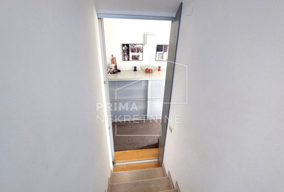 Na katu se nalaze tri prostrane sobe od kojih jedna s garderobom, velika kupaonica s WC-om, terasa, balkon i predprostor.