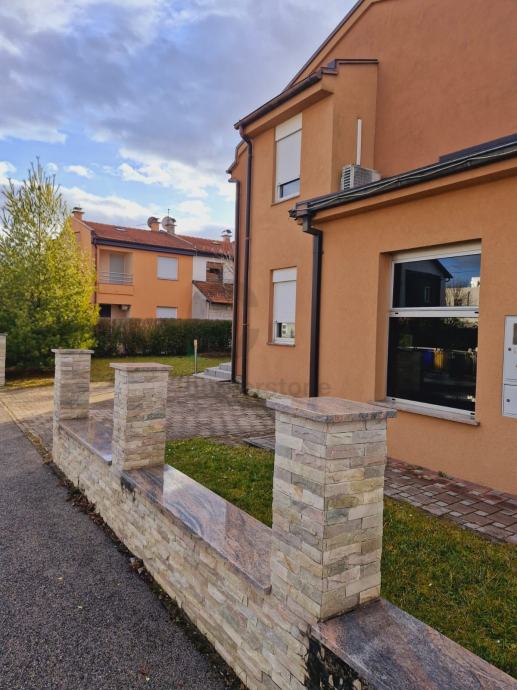 Nalazi se kao posljednja kuća u nizu na parceli od 201 m2 koje čine zeleni dio površine i 4 parkirna mjesta.