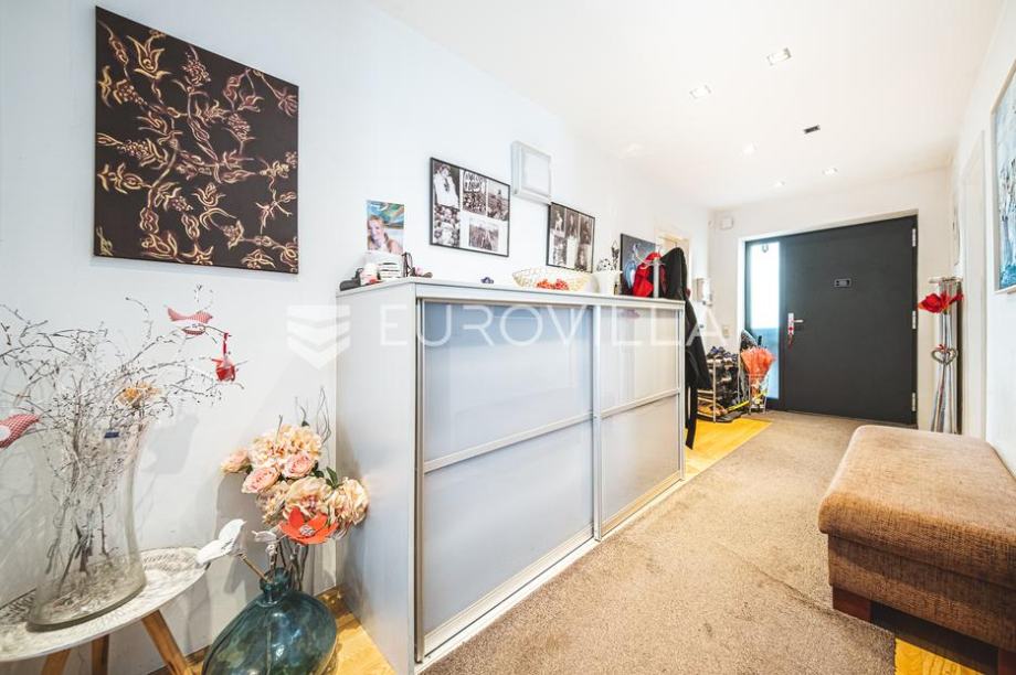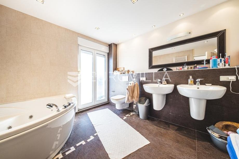 Zaprešić, Sjever, vrhunski i moderno uređena samostojeća obiteljska kuća NKP 218,77 m2 na zemljištu od 518 m2 s povezanim zemljištem ukupne korisne površine od 700 m2. U dvorištu je moguće parkirati 3 vozila uz besplatni parking u neposrednoj blizini.Kuća je izgrađena na tri etaže. Prizemlje (NKP 83,16 m2): ulazni hodnik, dnevni boravak s kuhinjom i blagovaonicom otvorenog tlocrta s izlazom na terasu i vrt, spavaća/radna soba, kupaonica i ostava. Prvi kat (NKP 73,01 m2): pretprostor, dvije spavaće sobe, master soba s garderobom, kupaonica, terasa i balkon. Potkrovlje (NKP 62,60 m2): visoko potkrovlje (90 % prostora iznad 2 metra visine) u roh-bau stanju sa svim glavnim priključcima.Obiteljska kuća je izgrađena 1972. godine sa svim dozvolama. Od tada do danas provedene su dvije adaptacije, 2005. godine (cjelovita adaptacija i rekonstrukcija krovišta s legalizacijom) i 2018. godine (thermo fasada STO i FUNDERMAX, cjelovita adaptacija terasa, balkona, okućnice i vrta). Svi upotrijebljeni građevinski i instalacijski materijali i oprema su više, premium klase.Tehničke karakteristike i gradnja:Temelji su betonski MB 20. Krovna konstrukcija je drvena s pokrovom od crijepa proizvođača TONDACH. Serklaži su u potpunosti izvedeni. Vanjski i unutarnji nosivi zidovi su od opeke formata d=35 cm dok su unutarnji pregradni zidovi od opeke formata d=12 cm. Međukatna konstrukcija je pojačan betonskom tlačnom pločom. Dimnjak je izveden za potrebe katne ventilacije. Obrada zidova su keramičke pločice, žbuka s nanosom premium vodoperivih boja (Dulux, Jupol unutarnje površine, Caparol vanjske površine). Obrada stropova je žbuka s nanosom premium vodoperive boje. Izvedena je termo fasada s hidro i termo izolacijskim slojem proizvođača STO dok je na soklu postavljen kamen. Obiteljska kuća za grijanje koristi kondenzacijski bojler monoblock s integriranim spremištem vode od 120l proizvođača VAILLANT te s radijatorskim razvodom proizvođača VOGEL&NOOT i Danfoss termostatskim glavama. Klima uređaji su po SPLIT sistemu proizvođača DAIKIN koji koristi ekološki rashladni medij s plinom R32.Stolarija je ALUMINIJ i PVC, prozori krilo na krilo, vrata puna s i bez nadsvjetla proizvođača KÖMMERLING. Izvedene su i električne aluminijske rolete. Ulazna vrata su proizvođača INOTHERM na otisak prsta i s video kamerom. U kuhinji je namještaj i oprema DANKÜCHEN. Ugrađeni ormari su proizvođača EDURO. Armaturna oprema je proizvođača GROHE dok je sanitarna oprema proizvođača DOLOMITE. Na podovima su keramičke pločice proizvođača MARAZZI, parket je hrastov 1. klase. Vanjska limarija je bakrena (oluci).U dvorištu su postavljeni opločnici proizvođača SEMMELROCK otporni na sol, niske temperature i habanje, ogromne nosivosti s razvedenim sustavom drenaže. Na vanjskim terasama i balkonima korištene su gres pločice protu klizne i otporne na mraz. Korišteni su vanjski laminati paneli i obloge proizvođača FUNDERMAX. Ulazna ograda je klizna s elektro motorom i napravljena od aluminija.U dvorištu je velika vrtna kućica 12m2 NKP s vlastitom rasvjetom i sustavom za kontrolu te ugrađenom opremom za navodnjavanje svih zelenih površina proizvođača RAIN BIRD.Na vanjskim površinama koriste se ALARM sustavi s videonadzorom, portafonom i LED rasvjetom oko kuće.Lokacija kuće je izvrsna i u neposrednoj blizini svih potrebnih sadržaja: trgovine, dječji vrtići, škole, akademski centar B.A. Krčelić i Š.R. centar Zaprešić, golf tereni i park-šuma Novi Dvori u radijusu od 700 m. Kuća se nalazi u idealno urbaniziranom dijelu grada i naselja sa obiteljskim kućama sa izvrsnom prometnom povezanošću. Udaljenost od centra Zaprešića cca 500 m.Za sve dodatne informacije stojimo na raspolaganju....Za ovu nekretninu kontaktirajte agenta na broj telefona +385 95 668 8735.Više na Eurovilla.hr, ID: 201961Direktan link: https://eurovilla.hr/nekretnina/zapresic-moderna-samostojeca-obiteljska-kuca-nkp-218-77-m2-vrhunska-lokacija/201961/-----... For this property contact our agent on telephone number +385 95 668 8735.More on Eurovilla.hr, ID: 201961Direct link: https://eurovilla.hr/en/property/zapresic-moderna-samostojeca-obiteljska-kuca-218-77-m2-vrhunska-lokacija/201961/...