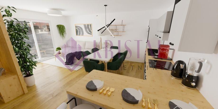 Ovaj osunčani 3-sobni stan, površine 58 m2 nalazi u novogradnji u Zaprešiću, na 2. katu, zgrada A.