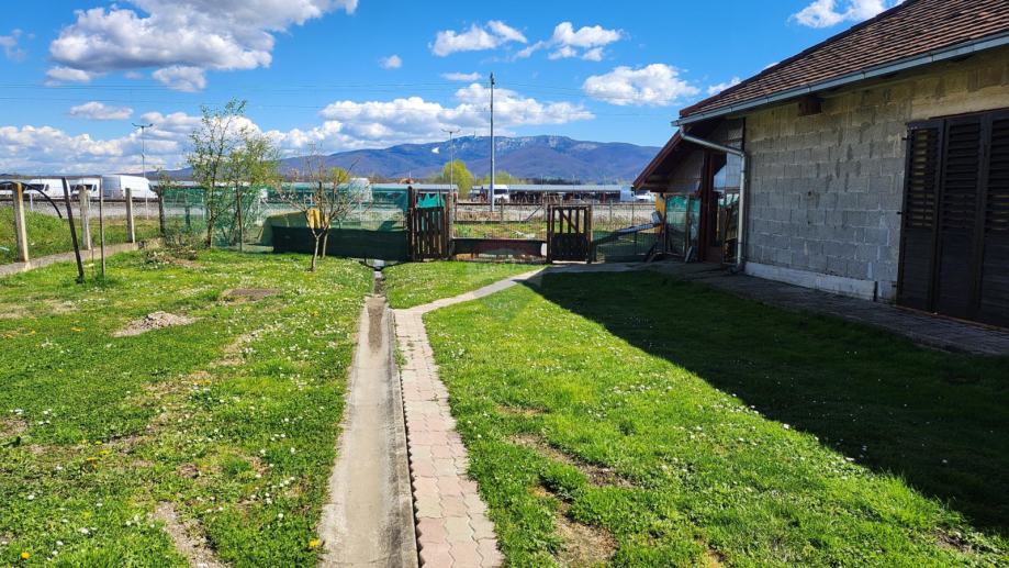 U održavanom i ograđenom dvorištu nalazi se terasa sa nadstrešnicom i velika garaža od 53m2 koja može poslužiti i kao radionica. Ulaz u dvorište je asfaltiran, dok se u nastavku parcele pruža travljak sa voćkama. Na samom kraju parcele je vrt sa svom opremom za održavanje (drvarnica, stazice, navodnjavanje kap na kap).