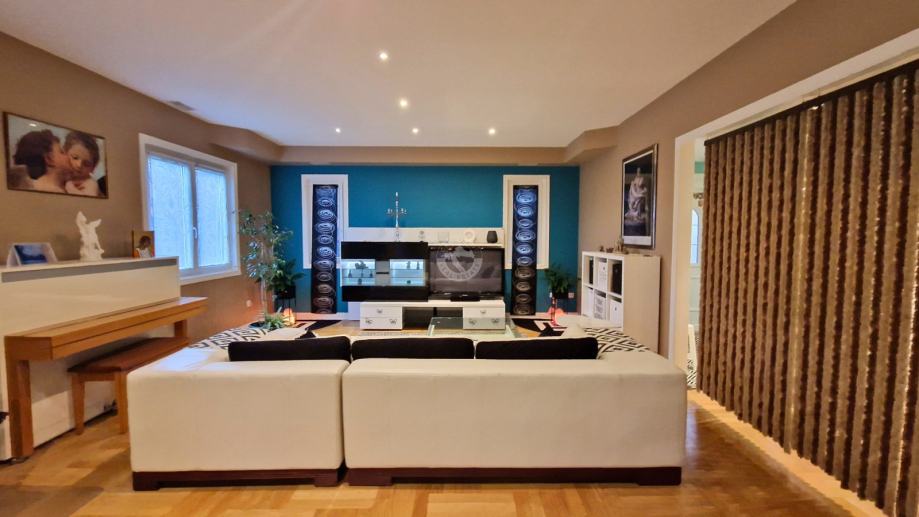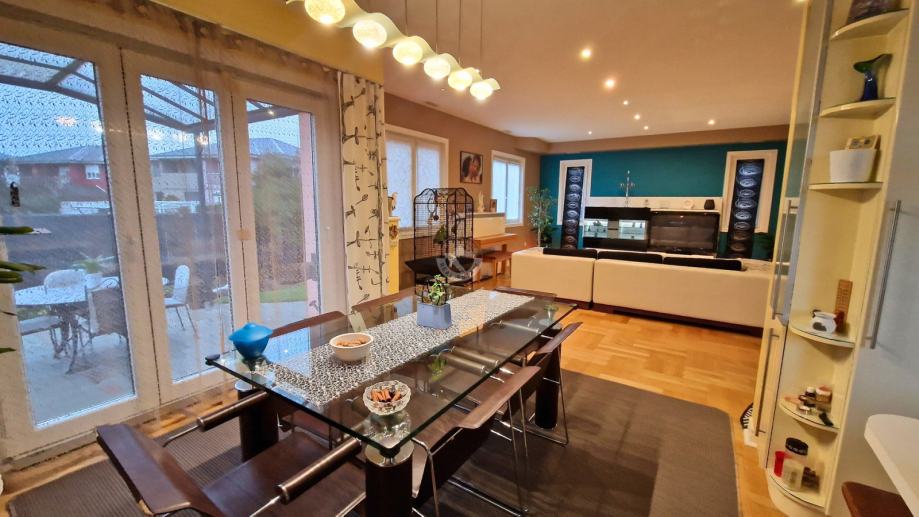 Na prodaju je samostojeća kanadska (montažna niskoenergetska) kuća ukupne netto površine 204 m2, smještena na parceli od 390 m2 u mirnom dijelu Zaprešića. Objekt iz 2006. godine odlikuje se pažljivo uređenom okućnicom, pružajući ugodan boravak u vrlo sunčanom okruženju s lijepim pogledom.