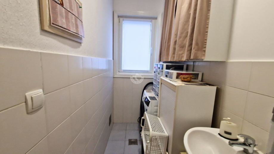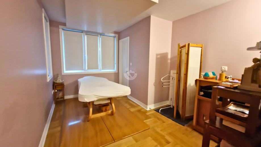 U prizemlju se nalaze dnevni boravak spojen s kuhinjom i blagovaonom, wc, vešeraj i odvojena prostorija s posebnim ulazom i wc-om koja je trenutno u funkciji salona za masažu.