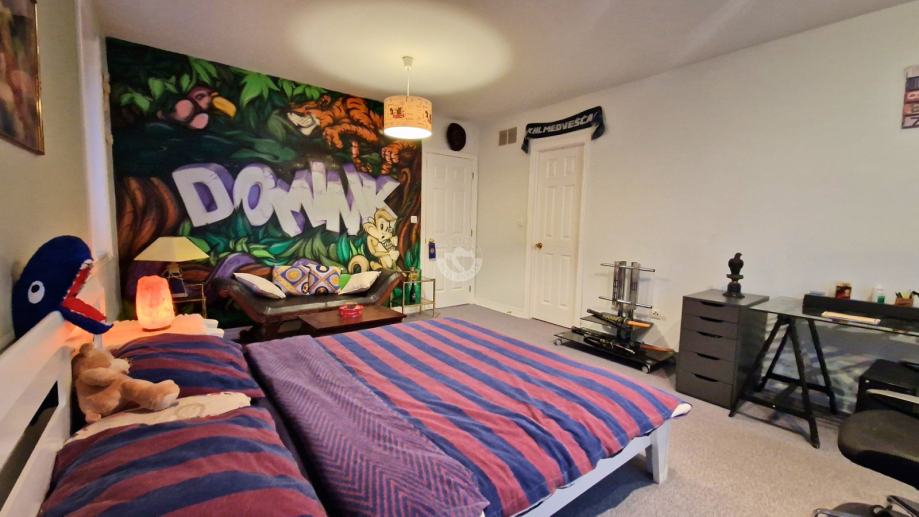 Kuća ima na katu četiri spavaće sobe (od kojih svaka ima ugradbeni ormar) i dvije kupaonice.