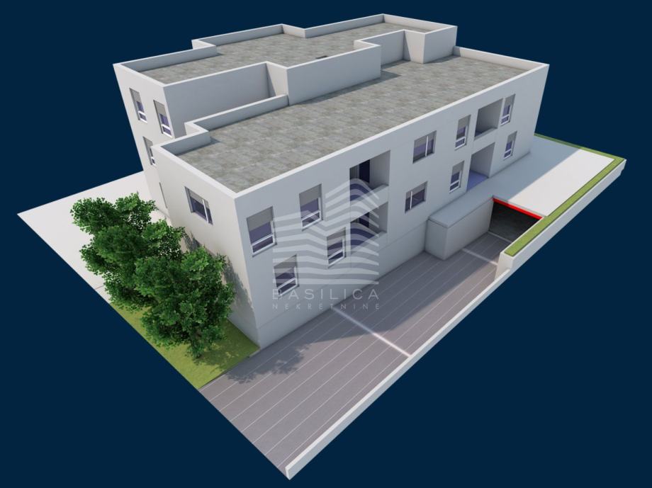 Konstrukcija armirano betonska, vanjska fasada stiropor 15cm, Vanjska stolarija antracit boje sa vanjske strane, sa komarnicima i električnim roletama, te trostrukim staklom. Grijanje putem Bosch plinskog kondenzacijskog bojlera - podno grijanje. Hlađenje putem klima uređaja (Bosch). Moguć odabir između 2-3 vrste hrastovog parketa i keramičkih pločica. Unutrašnja stolarija prvoklasna, bijela. Protuprovalna i protupožarna ulazna vrata marke Dierre. Stubište kamen, te inox ograda u stubištu. Vanjski zid od lođe će biti izveden u staklo radi modernijeg izgleda zgrade. Walk-in tuševi u sanitarijama, te viseća školjka i ugradbeni kotlić- Knauf pregradni zidovi.