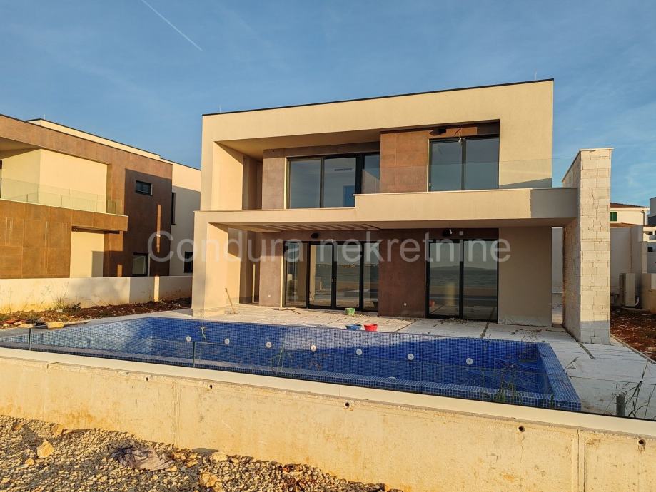 Zaton - na mirnoj lokaciji okruženoj modernim vilama i kućama, u prvom redu do mora, nalazi se ova luksuzna vila s bazenom.
