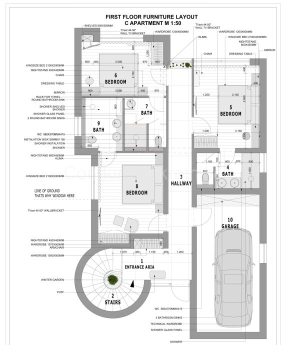 Ukupna površina vile iznosi 264,24 m2, a njen unutarnji prostor prostire se na dvije razine - prizemlje i kat.