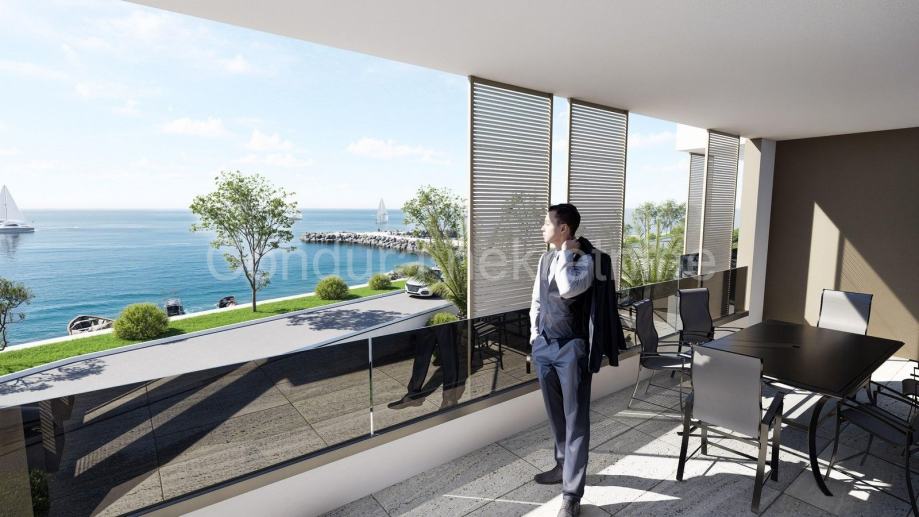 Poseban dojam ostavlja dnevni boravak iz kojeg se, kroz staklene stijene izlazi na lođu površine 20,64 m2 s očaravajućim otvorenim pogledom na more.
