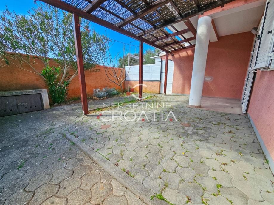 Stan u prizemlju stambene zgrade površine 62,60 m2 (neto unutarnji stambeni prostor bez vanjskih terasa i spremišta) + 2 vanjske natkrivene terase + 2 vanjska spremišta + dvorište, na samo 100 m od gradske plaže, u blizini pješčano - šljunčane uvale Dražnik (plaža Jaz).