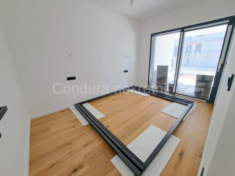 S2 - ukupne neto korisne površine 77,72 m2 sastoji se od predsoblja, dvije spavaće sobe, dvije kupaonice, dnevnog boravka s kuhinjom i blagovaonicom te velike loggie (35 m2). Apartmanu također pripada dio vrta ( ca 27 m2) i dva parkirna mjesta. Cijena: 310 880 EUR