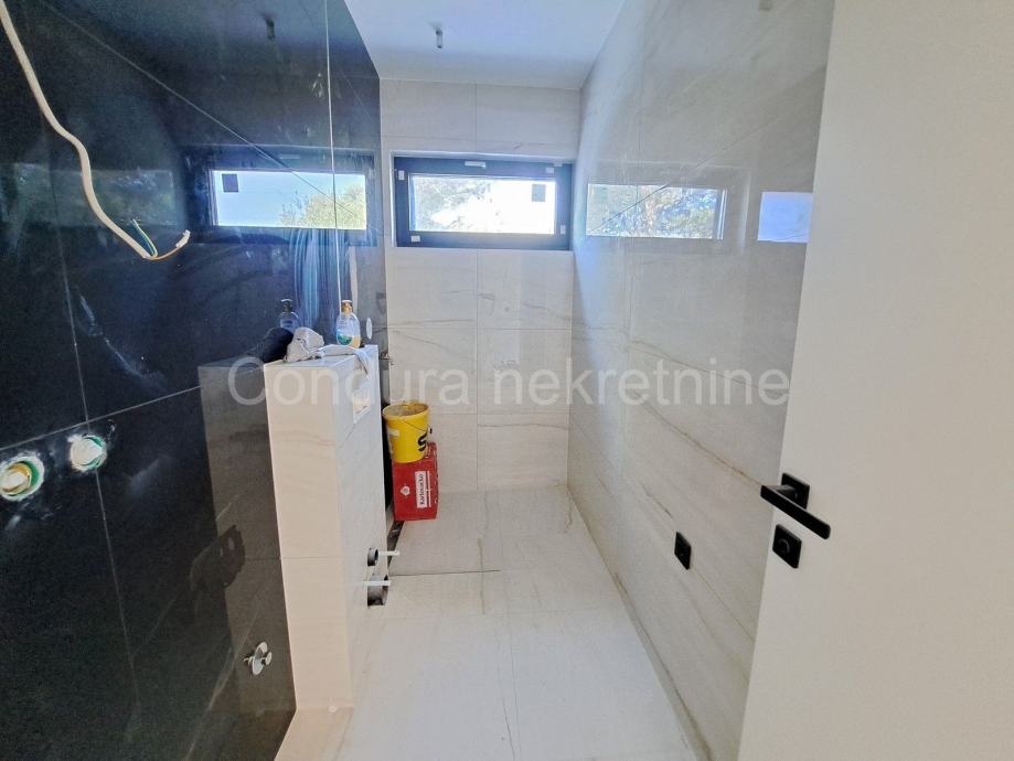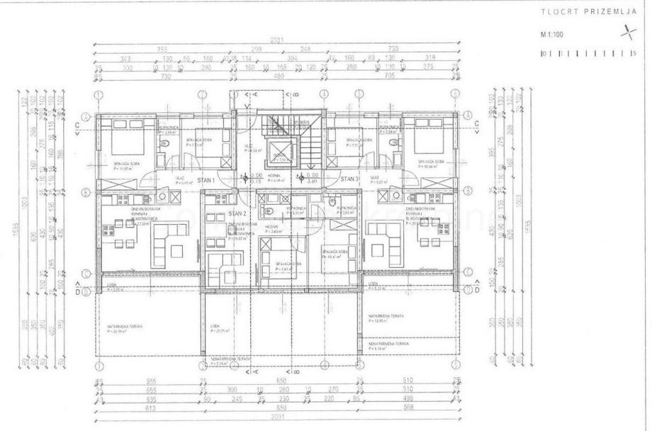 S1 - ukupne neto korisne površine 76,41 m2 sastoji se od ulaza, dvije spavaće sobe, kupaonice, dnevnog boravka s kuhinjom i blagovaonicom te prostrane natkrivene terase (26 m2). Apartmanu pripada i vrt (ca 29 m2) te dva parkirna mjesta. Cijena: 360 000 EUR