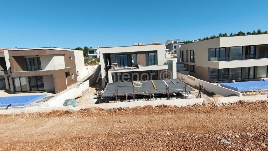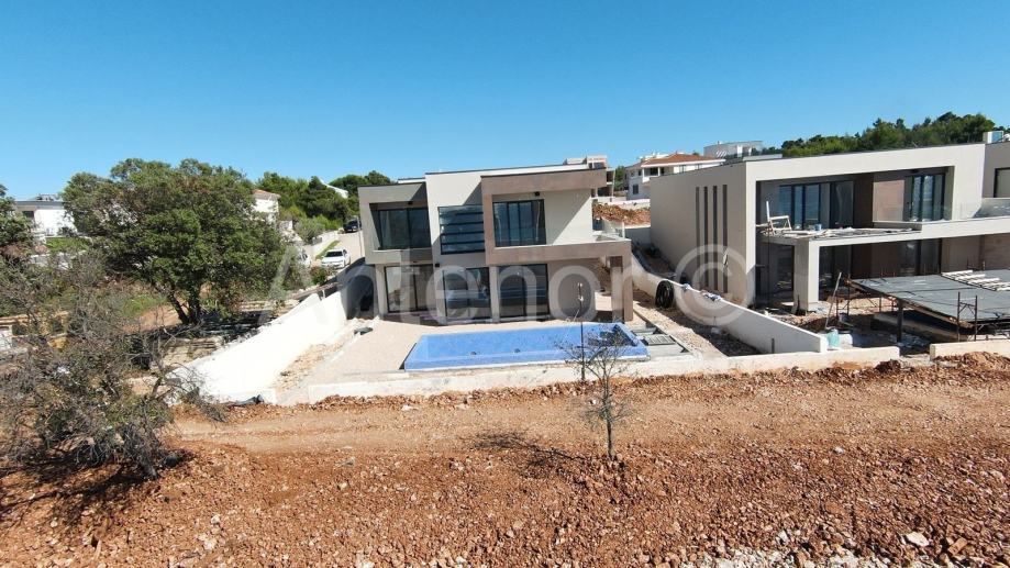 Dvorište kuće ima uređenu okućnicu i grijani infinity bazen. Vila je opremljena Loxone sustavom (smart house - upravljanje kućnom rasvjetom, roletama, grijanjem, hlađenjem, sigurnosnim sustavom i multimedijom).