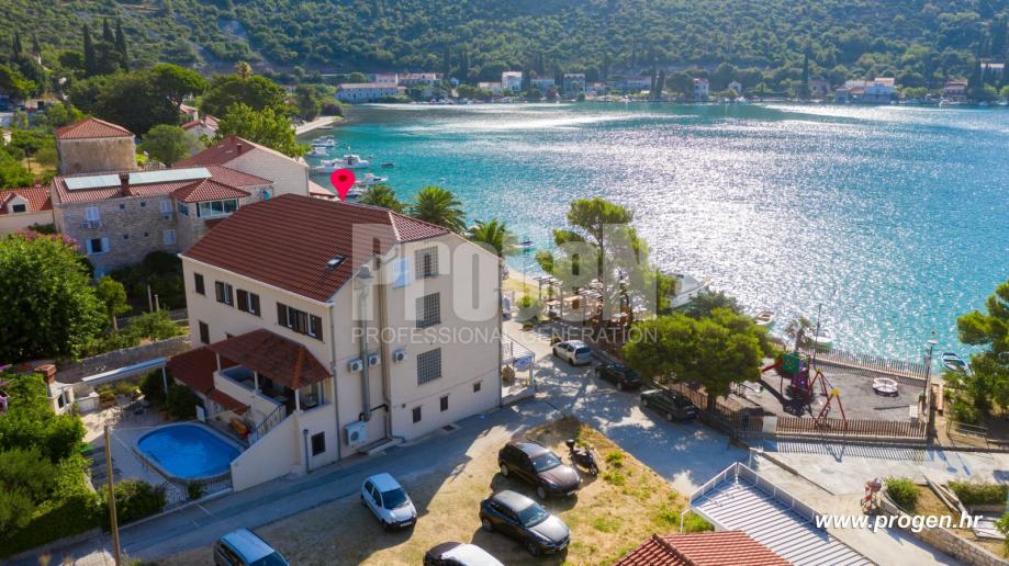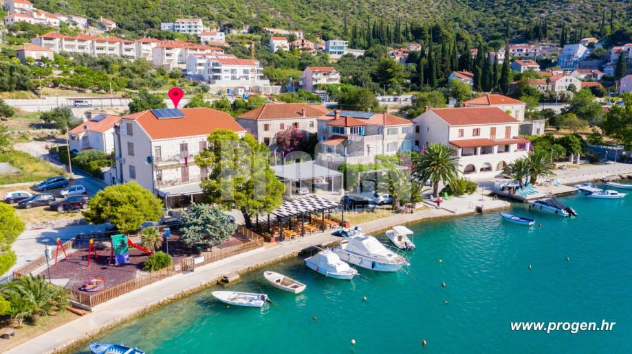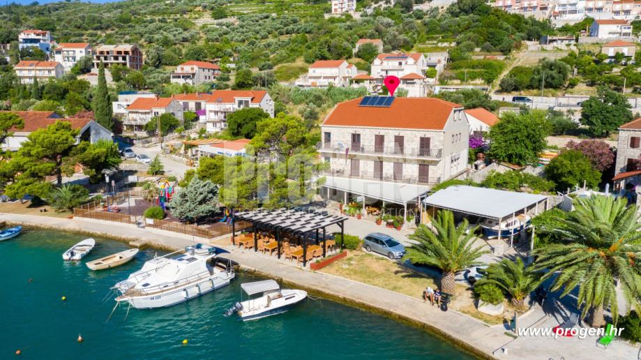 U prizemlju dvosoban stan i restoran sa terasom prema moru, uz more restoran koristi terasu koja je pod koncesijom, na prvom i drugom katu 6 renoviranih jedinica (ukupno 12), potkrovlje roh-bau. Bazen sa sunčalištem iza kuće. Kuća posjeduje pravo korištenja veza za brod. Prilika