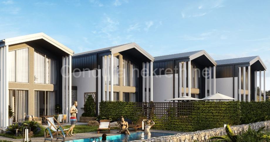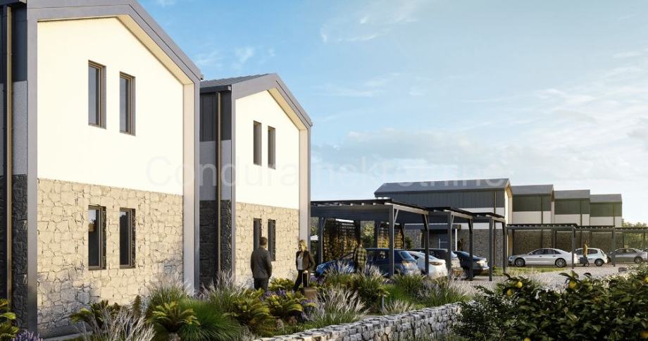 Moderne četiri stambene jedinice. Princip Smart House, kuće u nizu. Smještene u mirnom naselju i s pogledom na planinu Velebit.