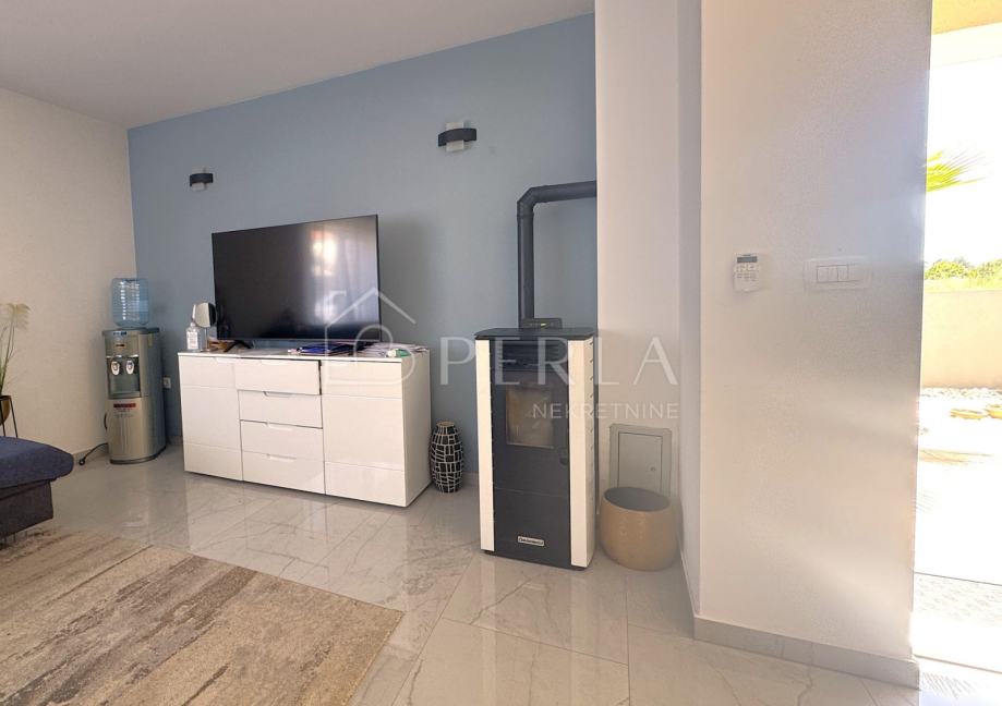 Svaka prostorija je opremljena klima uređajem (ukupno 7), a osim klima uređaja, u prizemlju se nalazi i peć na pelete.