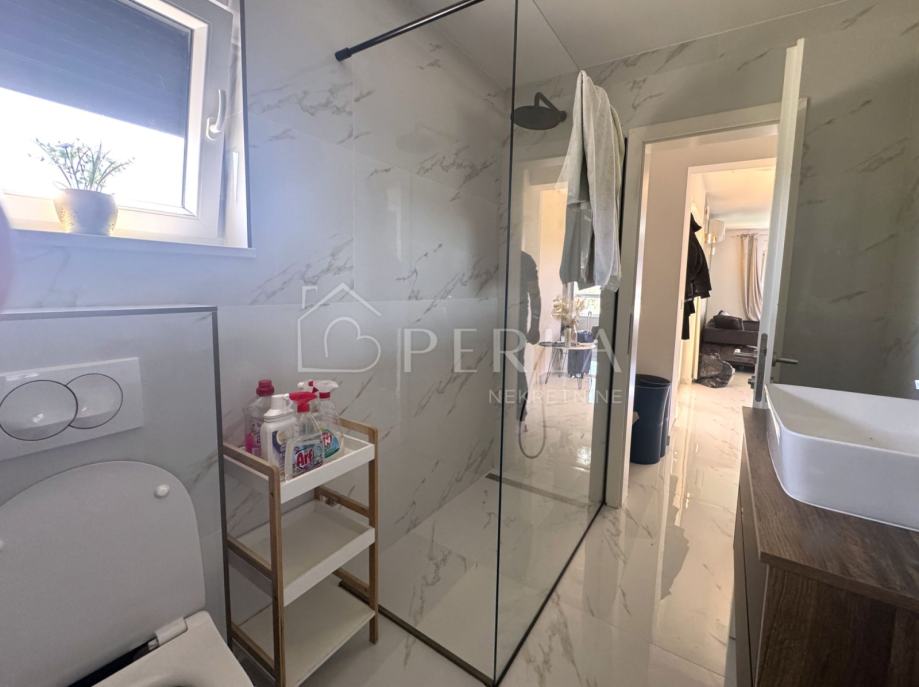 Kuća se sastoji od dva stana te je idealna za miran obiteljski život, a ujedno i super prilika za one koji se žele baviti turizmom.