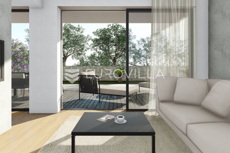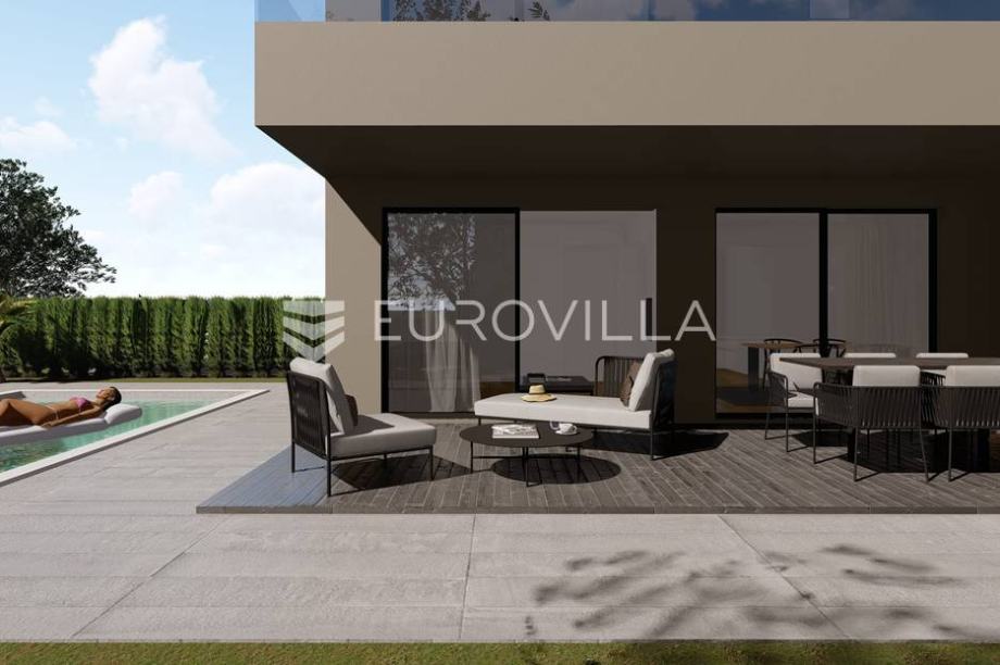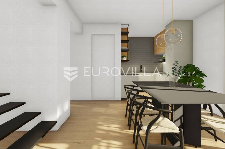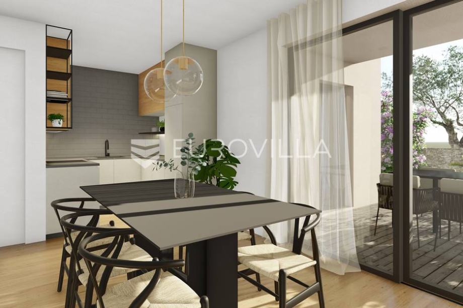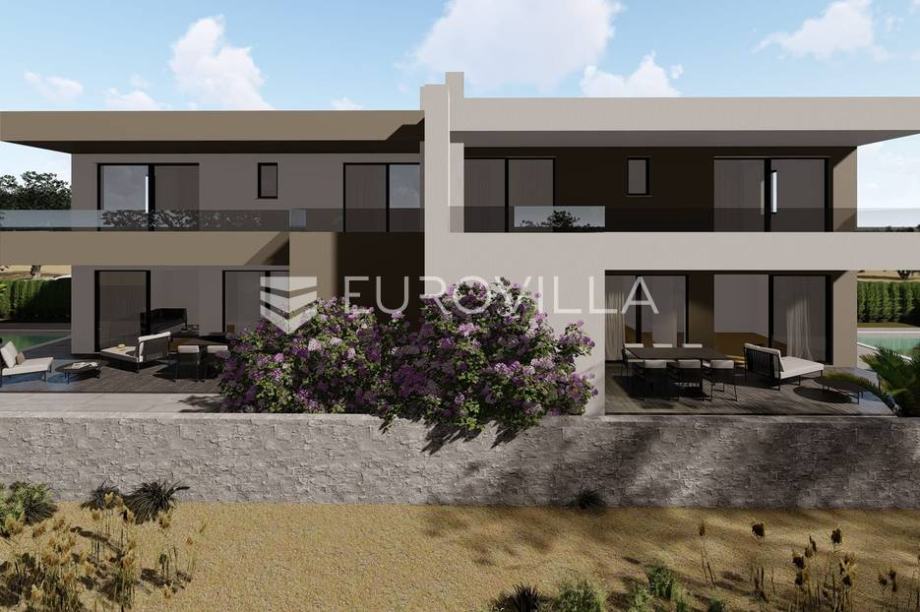 Novoizgrađena vila površine 150 m2 kao dio identičnog duplexa. Sastoji se od prizemlja i prvog kata. Prizemlje površine 69,79 m2 se sastoji od kuhinje, blagovaonice i dnevnog boravka, spavaće sobe, kupaonice te ljetne kuhinje i spremišta. Prvi kat površine 80,24 m2 se sastoji od tri spavaće...