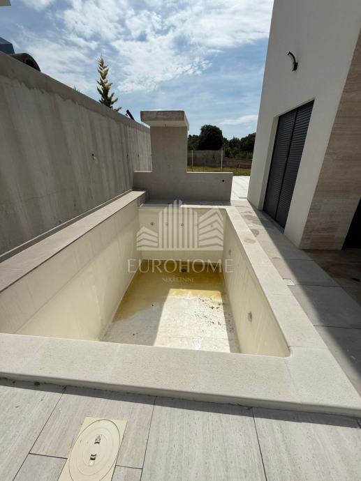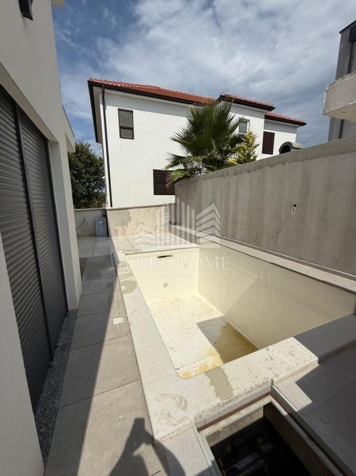 Zaton, predivna dvojna kuća s bazenom (115 m2) i prostranom okućnicom (250 m2). Kuće su oglašene odvojeno kao zrcalne polovice i obe su na prodaju.