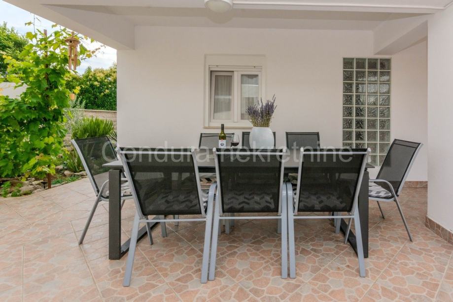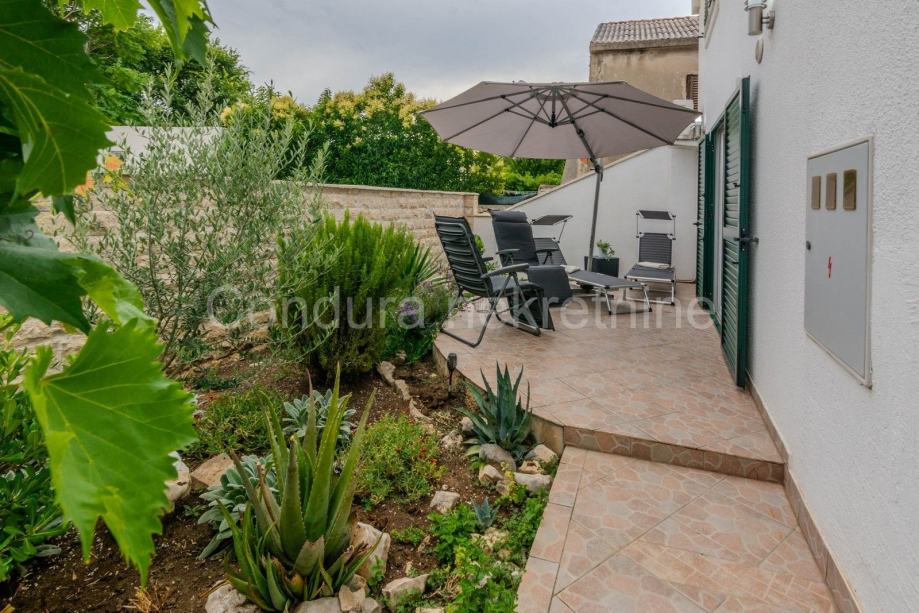 - terase na koju se izlazi iz dnevnog boravka, savršenu za sunčanje, obroke na otvorenom ili opuštanje i uživanje u biljkama koje ju okružuju.