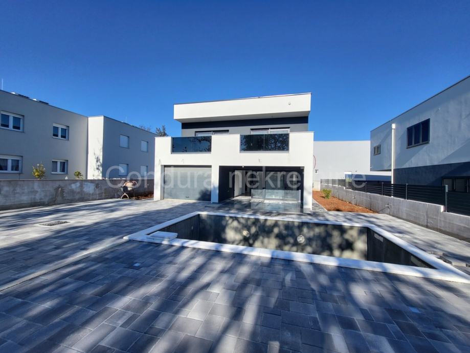 Vila sadrži garažu te jedno parkirno mjesto, a u dvorištu se nalazi grijani bazen veličine 6,5 x 3,5 m.