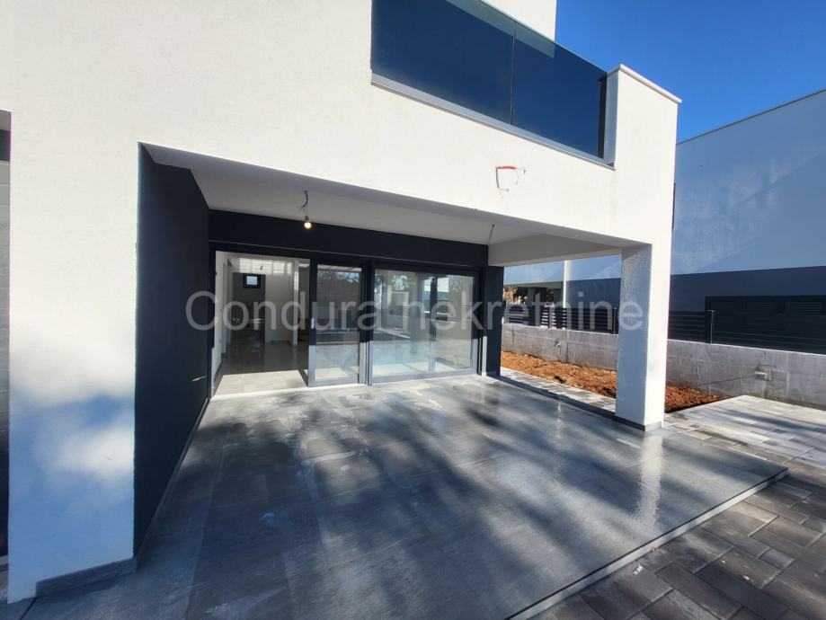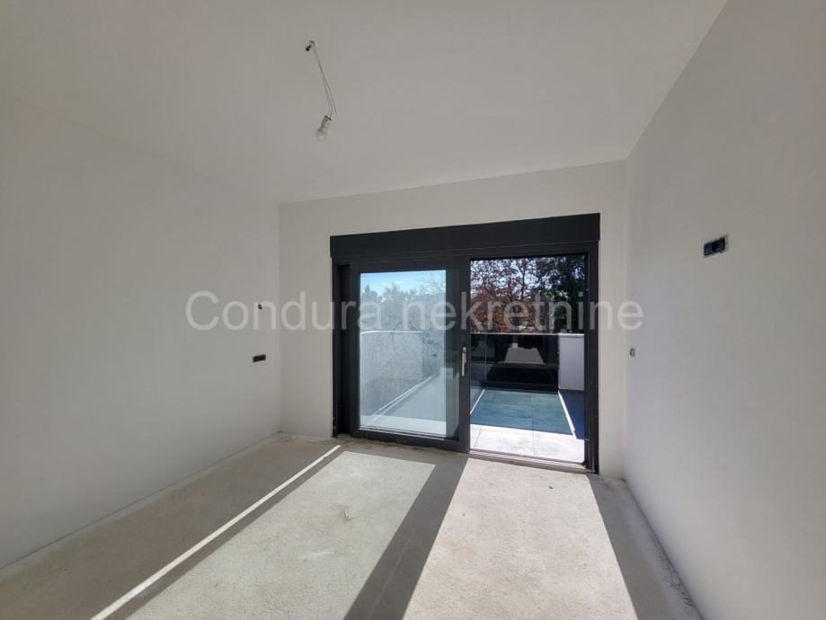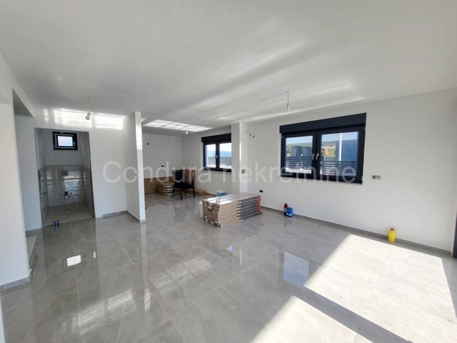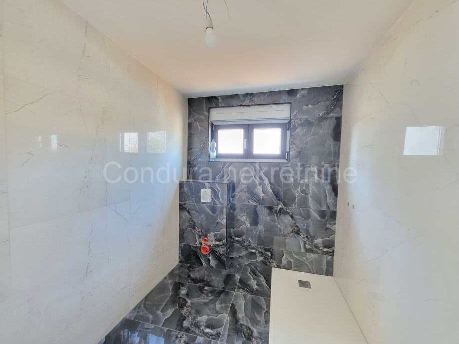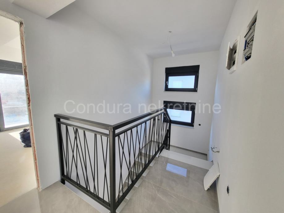 Raspored prostorija u prizemlju čine: predprostor, dnevni boravak s blagovaonicom, kuhinja, wc, kupaona, terasa i ostava. Unutarnje stepenište vodi na kat gdje se nalaze tri spavaće sobe, hodnik, kupaona i terasa. U svakoj sobi će biti postavljena klima. Neto korisna površina kuće iznosi 157,45 m2.