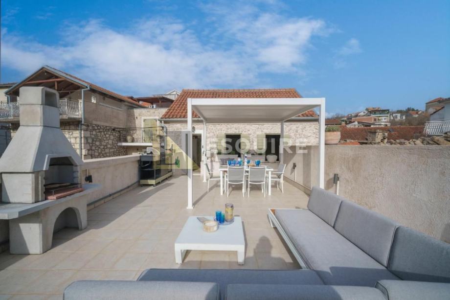 Na vrhu kuće (krovu) nalazi se prostrana terasa površine 36 m2 s pogledom na Zaton i more. Terasa je opremljena lounge prostorom s roštiljem, a postoji mogućnost postavljanja manjeg bazena ili jacuzzija.