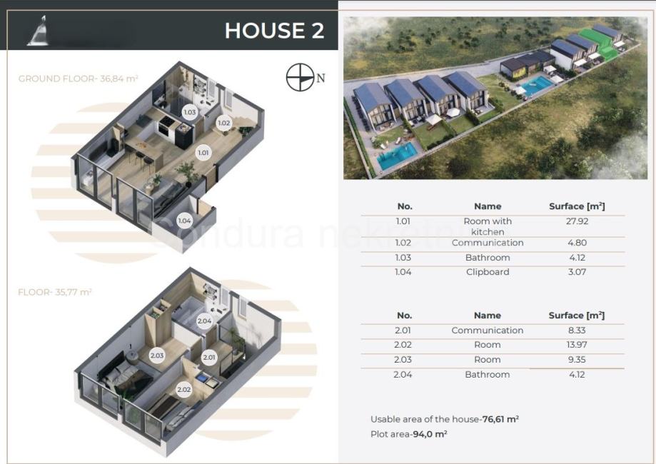 stambena površina 76,61 m2 ( površina vrta 94,0 m2 )