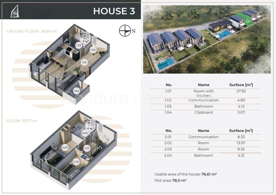 Sve kuće imaju vlastitu terasu površine 20 m2.