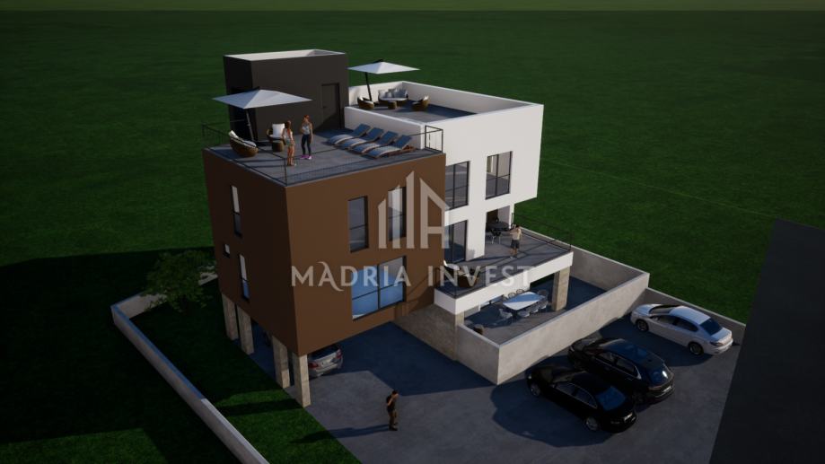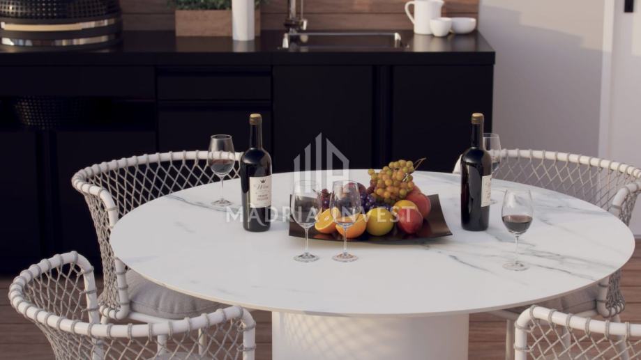 Apartmanu pripada krovna terasa površine 48 m2 i dva parkirna mjesta.